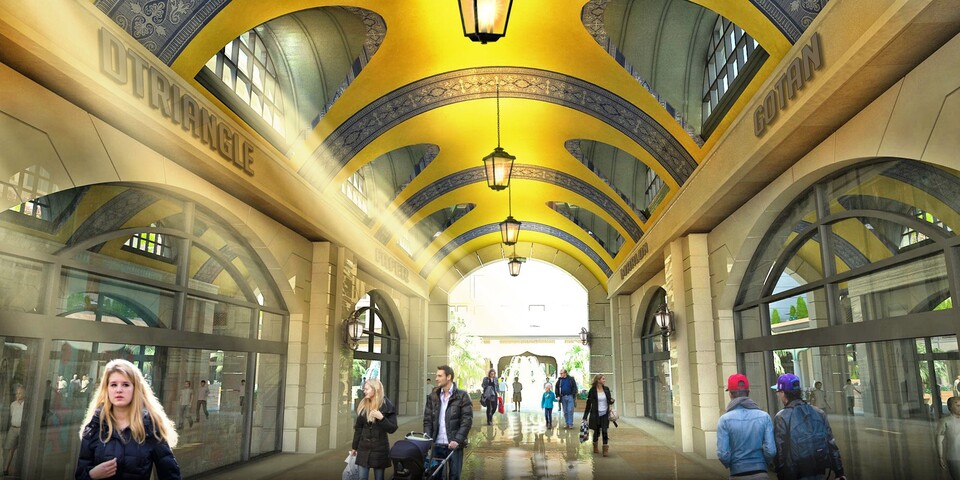منطقة تجارية تتضمن مقاهي, مطاعم ومراكز تسوق