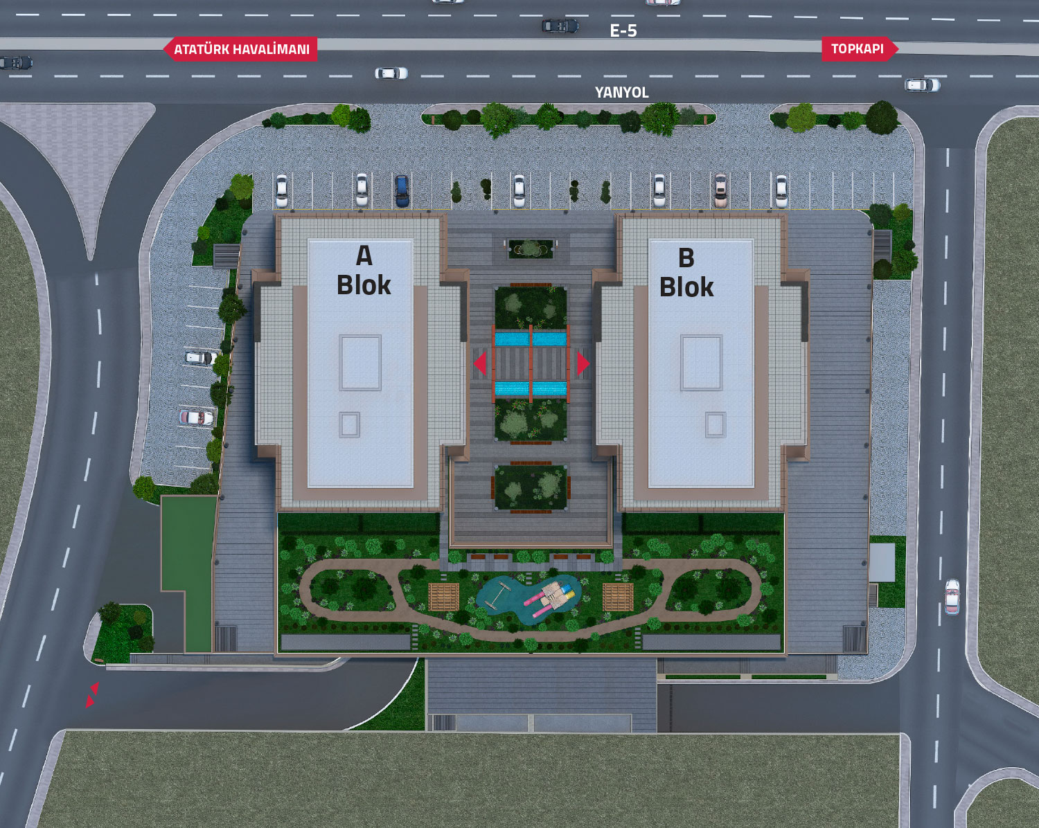 تم تشييد المشروع بالقرب من أكثر الطرق السريعة في المدينة ، الطريق السريع E5 ، وعلى بعد 10 دقائق فقط من الطريق السريع TEM و 5 دقائق من الطريق الساحلي مما يجعل المدينة بأكملها في متناول يدك مع محطات المترو والمتروباص على مسافة قريبة من المجمع.