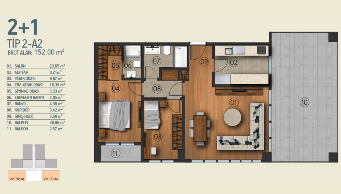 تشمل الشقق السكنية مجموعة متنوعة من المساحات لتناسب أي أسرة. بالإضافة إلى ذلك ، تم إضافة 30 شقة علوية فاخرة لهذا المشروع.
