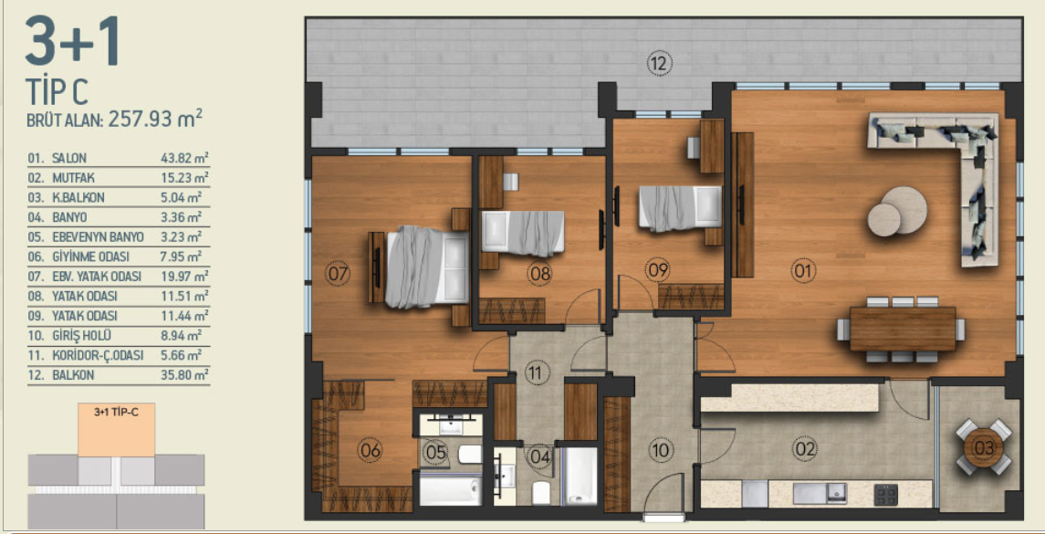 | شقة | 7+1 | 3 | 841.71m | $ 1,468,000 |