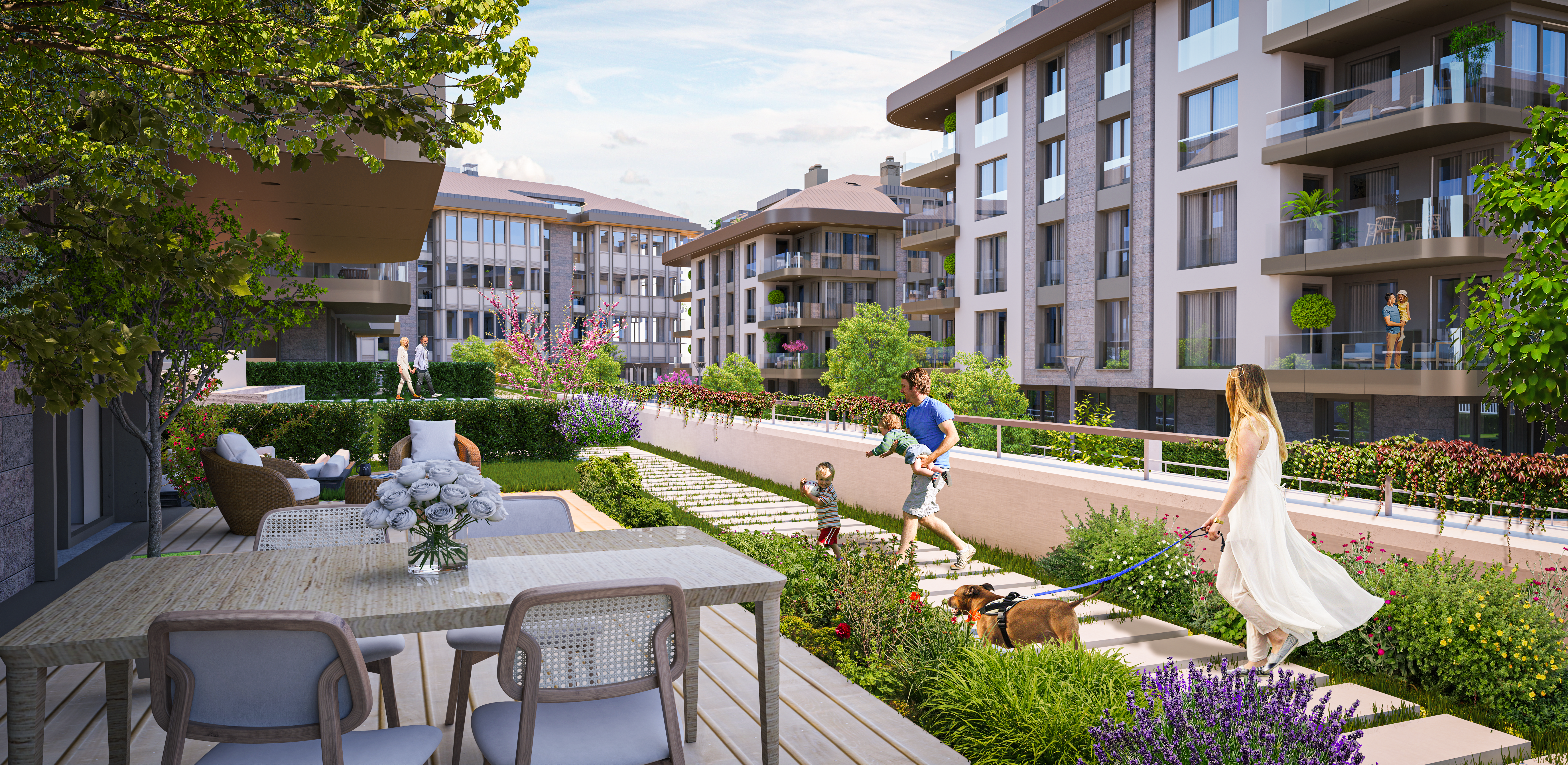 В проекте есть выдающиеся удобства, которые включают крытый бассейн, баскетбольную площадку, сауну, парную, фитнес-центр, детскую площадку, зону для домашних животных и кафе.
